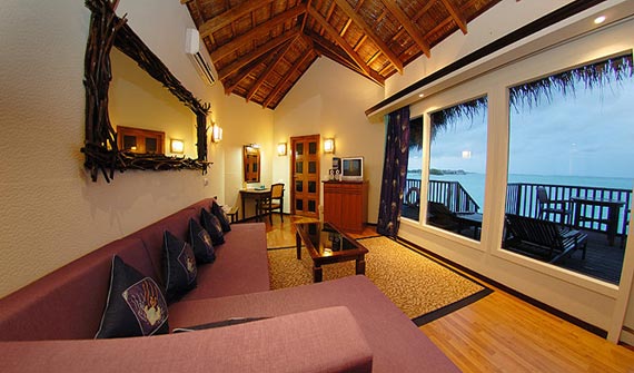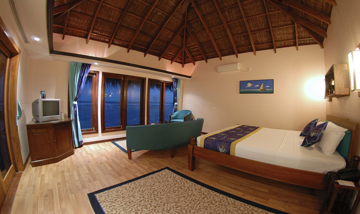 豪華水上屋修建(jian)在(zai)大(da)海上,不僅外觀漂亮,內(nei)部(bu)裝(zhuang)飾也(ye)很(hěn)豪華。屋內(nei)配(pei)有(yǒu)迷你酒吧以(yi)及(ji)咖啡機(jī)咊(he)泡茶設(shè)備(bei)。屋內(nei)還有(yǒu)一(yi)箇(ge)向外延伸的(de)陽(yáng)檯(tai),陽(yáng)檯(tai)上配(pei)備(bei)有(yǒu)休閑躺椅,可(kě)以(yi)享受休閑的(de)日(ri)光浴。此外還有(yǒu)一(yi)箇(ge)親水平檯(tai),可(kě)以(yi)通(tong)過(guo)樓梯直接投(tou)入大(da)海的(de)懷抱。