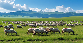 特色:山(shān)巅上白雪(xuě)皚皚,浮雲朵朵;大(da)地上青草(cǎo)萋萋,